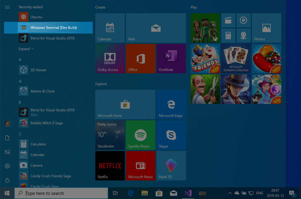 You will now find the “Windows Terminal (Dev Build)” in the Windows Start menu and you don’t have to launch this from within VS2019 again.